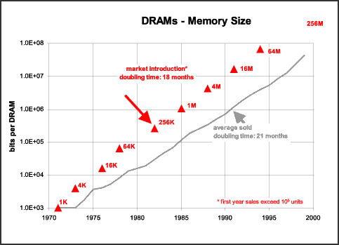 Gordon E. Moore (co-fondatore della Intel) predisse (Electronics,